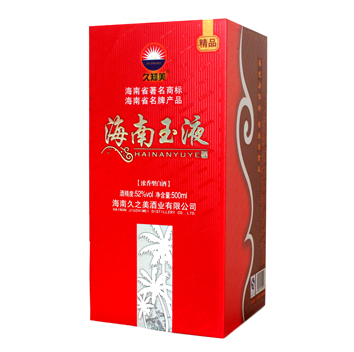 海南玉液酒是海南久之美酒業(yè)有限公司為海南本土市場量身定制的優(yōu)質濃香型白酒,飲后或豪飲后均不上頭、不口干、身體恢復快。2012年被海南省工商局認定為“海南省著名商標”;2013年被海南省名牌產品認定委員會授予為“2013年海南省名牌產品”稱號。該酒經(jīng)多位國家級和省級評酒專家品評,一致認同海南玉液酒不亞于“五糧液” 。該酒的包裝設計富有強烈時代氣息和濃厚地方特色,創(chuàng)造性地采用了“要想身體好常來海南島”宣傳海南的流行語,溶匯了海南文化元素,適宜接待應酬及做饋贈禮品,是海南...[更多內容]